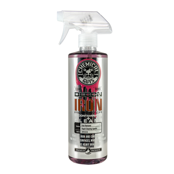 DeCon Pro libera depósitos de hierro y otros metales ferrosos de las ruedas y los paneles inferiores de la carrocería, luego neutraliza la reacción química corrosiva que conduce a la oxidación y la falla de la pintura. DeCon Pro rocía transparente y luego se vuelve violeta una vez que los catalizadores de hierro especiales reaccionan con los metales ferrosos y la reacción química libera la contaminación incrustada para que sepa cuándo eliminarla.