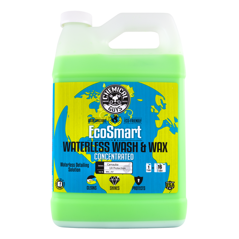 EcoSmart es un revolucionario sistema de detallado completo sin agua que limpia, da brillo y protege sin agua corriente. EcoSmart Concentrate 16 oz se puede diluir para obtener hasta 2 galones de producto. Ecosmart Concentrate 1 Gal se puede diluir para obtener 16 galones.