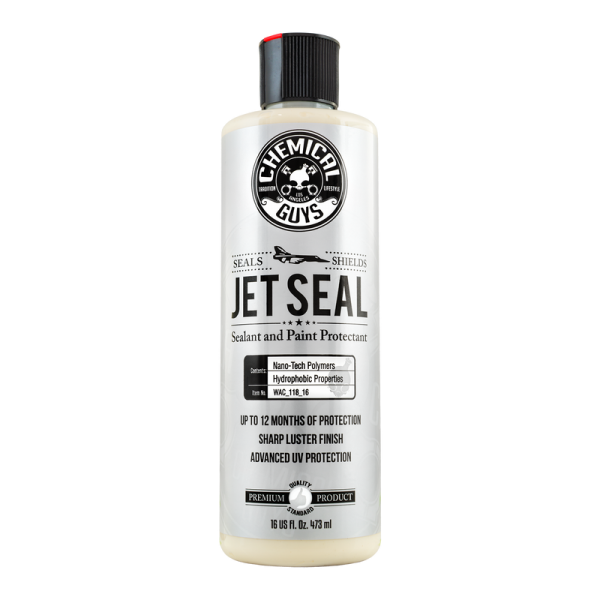 Las ceras tradicionales solo duran un par de meses , chemical guys desarrollo JetSeal para la industria aeroespacial, que exigía una protección sólida para los aviones a reacción que volaban en temperaturas extremas de frío y calor. Una capa de JetSeal ayuda a repeler el polvo y la contaminación , realza el brillo y conserva un acabado suave hasta por un año.