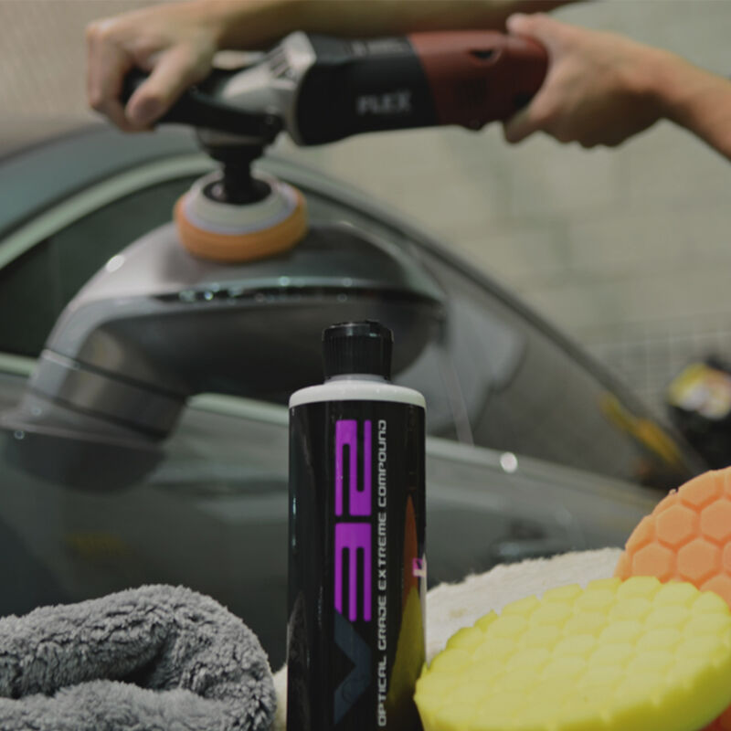 El compuesto extremo de grado óptico V32 es un compuesto de alta resistencia que elimina los defectos e imperfecciones de pintura de los acabados de pintura super duros, preparando la pintura para obtener resultados de pulido final superiores.