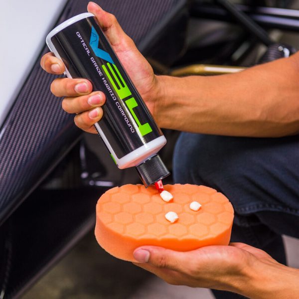 Los trabajos de pulido completo pueden llevar incontables horas. Con V4, se puede pulir un automóvil completo en unas pocas horas con una sola pasada. Para automóviles con marcas de remolino, rayones y defectos de ligeros a moderados, V4 es el pulimento perfecto que combina y termina en un solo paso. Los abrasivos en disminución cortan rápidamente para eliminar remolinos, rasguños y oxidación, luego terminan como un pulimento fino para crear un acabado de espejo húmedo.