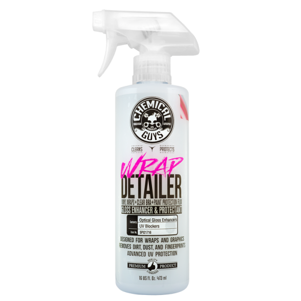 Wrap Detailer está diseñado para limpiar, dar brillo y proteger envolturas de vinilo brillante, sujetadores transparentes y gráficos impresos para que sus superficies envueltas se vean de la mejor manera y duren más tiempo.